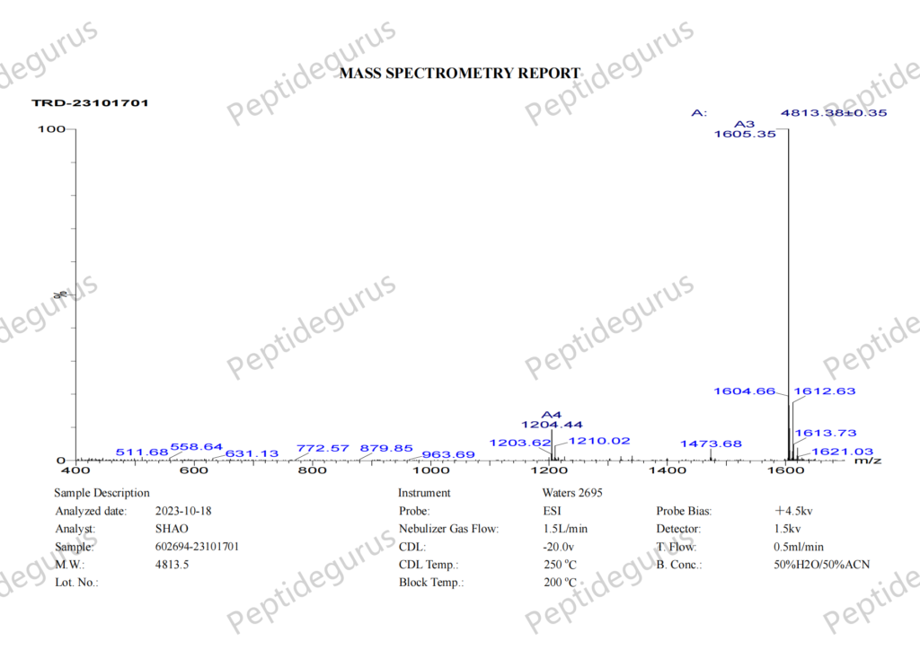 포장: Tirzepatide에는 효능을 보호하기 위해 Tirzepatide에 특수 포장이 사용되어 최첨단 대사 건강 연구에서의 사용을 용이하게합니다.